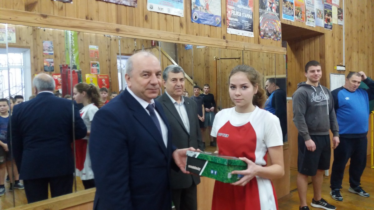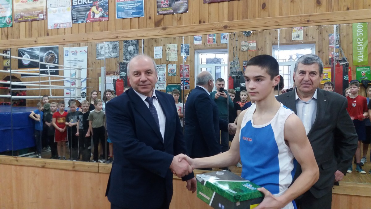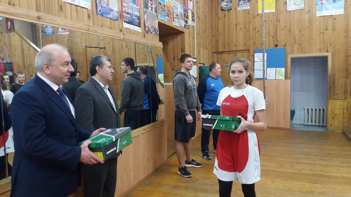 Председатель обкома профсоюза Виктор Гуторов поздравил учащихся с новогодними праздниками, пожелал высоких достижений в спорте, а также вручил детям спортивную обувь.