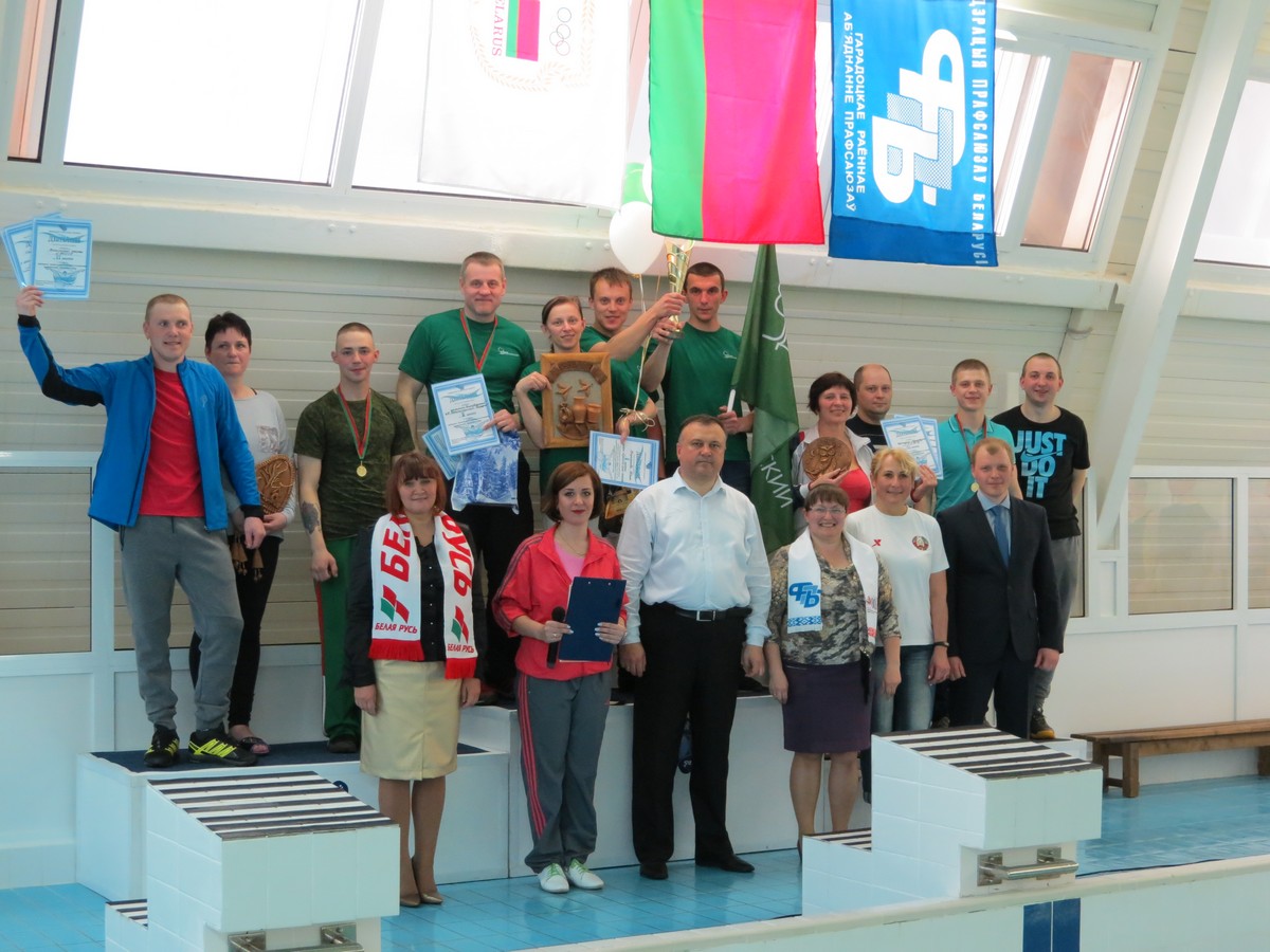 Самый главный приз, победу в эстафете получила команда ф-ла «Вировлянский» ИП «Детскосельский-Городок. Имена нашей команды-победительницы, войдут в историю района, как первые лучшие пловцы-любители. Команда ОАО «Птицефабрикиа Городок» заняла четвертое место, ПУ «Северный» Витебского КХП – 10 место. Все участники получили премии от первичных организаций.