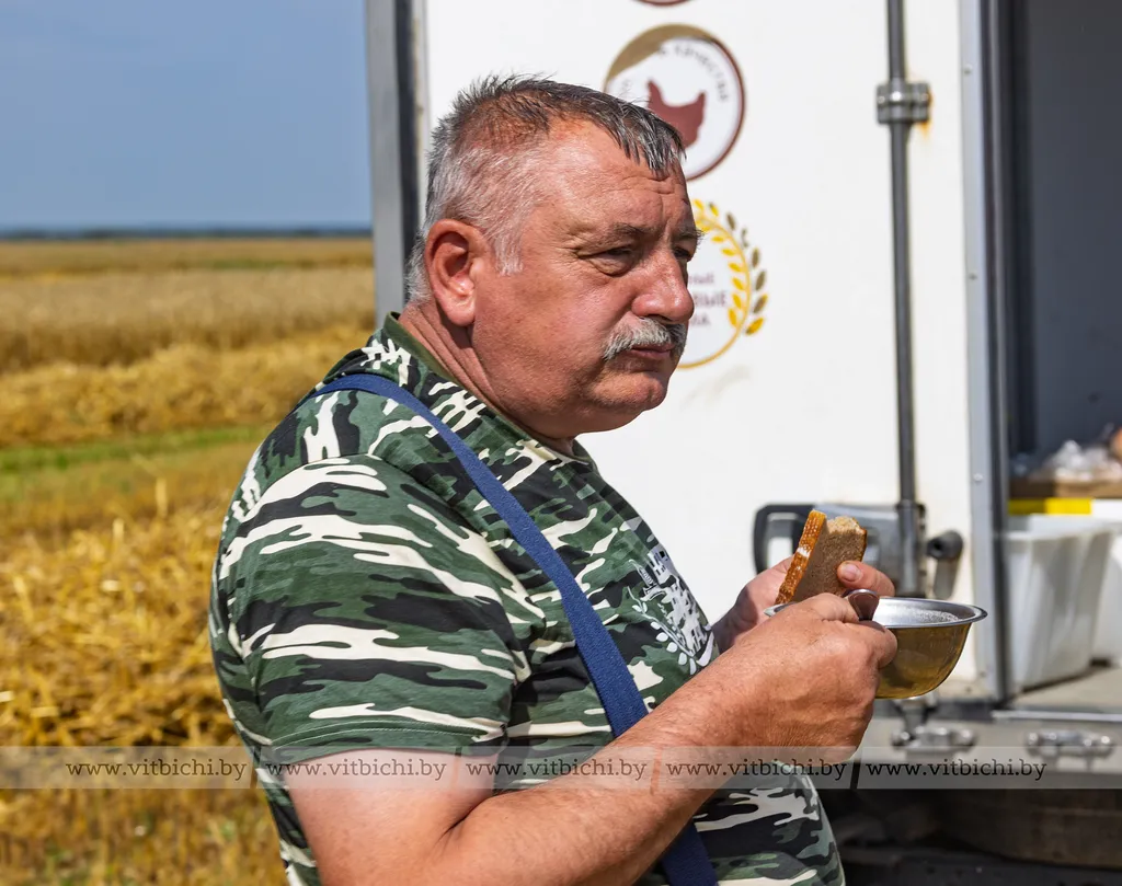 Когда мы беседовали с участниками уборочной, на поле приехала столовая на колесах. Буфетчик Дарья Писарева разливала вкуснейший борщ, накладывала в тарелку пшенную кашу и свиную котлету. И компот из яблок порадовал хлеборобов, которые также получили сухпаёк на вечер. И время обеденного перерыва механизаторы сэкономили, поэтому не до застолья. Подкрепились наспех и вперед на борьбу за урожай, потому что прекрасно понимают, что вся надежда на них и не подведут. Они с гордостью показали надпись на фирменной майке «Никто, кроме нас!» -- как у десантников. По этому принципу и работают. И они тоже за нашу безопасность – продовольственную.